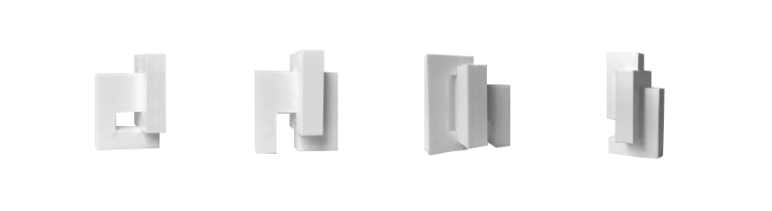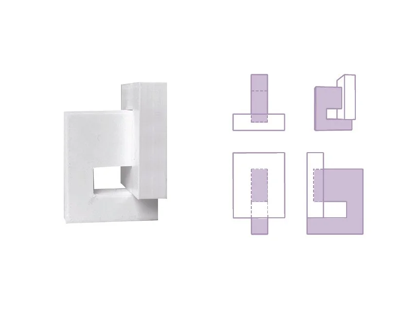 There are four object prototypes in this project. Despite the objects various components, they’re all designed to look like a single, uniform massing. Each component is deliberately proportioned using a ¼” grid and designed with similar qualities: straight lines that intersect at right angles and smooth, even surfaces.